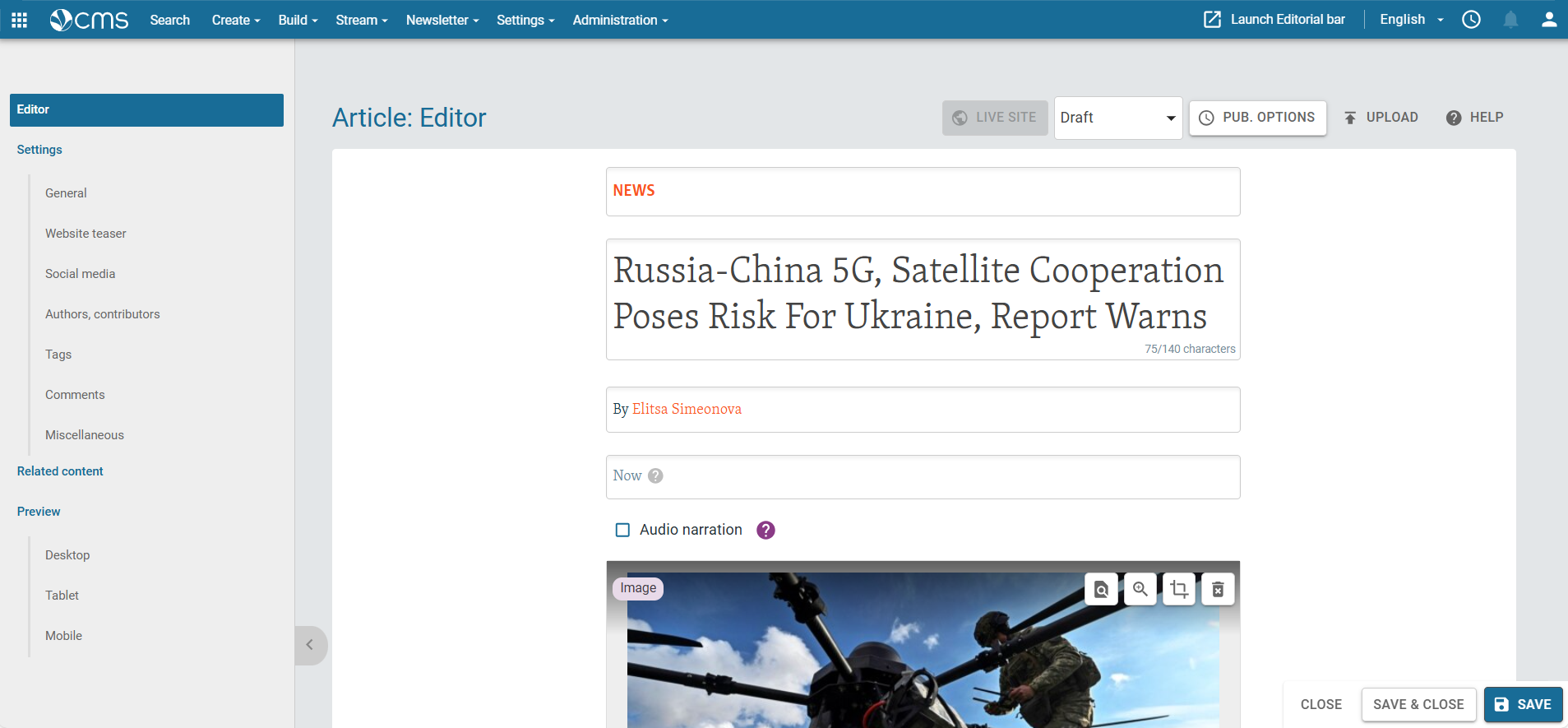 A powerful yet simple-to-use publishing tool for journalists. Whether you’re a reporter breaking the latest news via live video stream, or an editor publishing an article from behind a desk, Pangea CMS lets you reach audiences instantly.